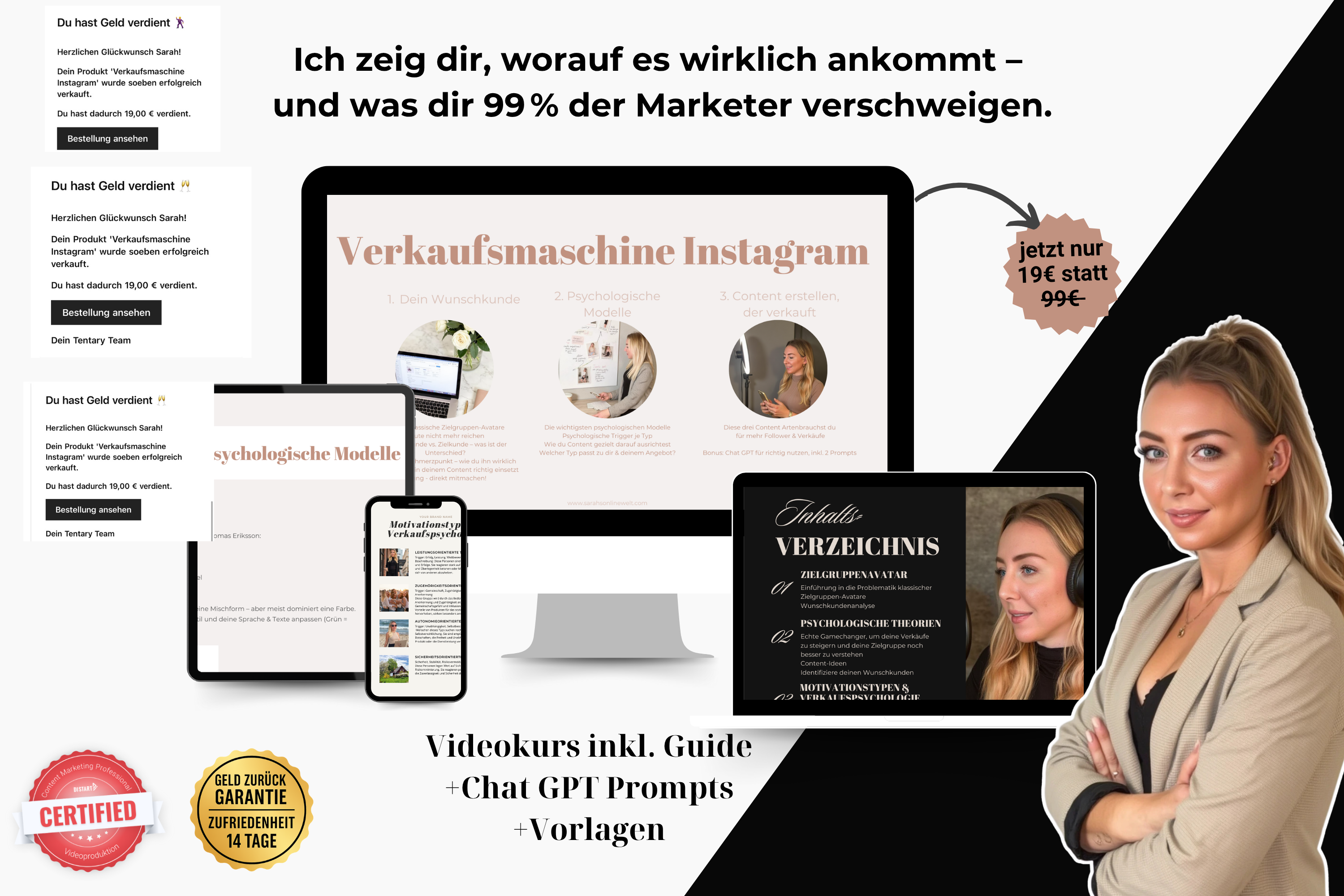Hallo Sarah, ich wollte dir einfach mal ein ganz herzliches Dankeschön dalassen! Ich bin total begeistert von deinem Kurs – besonders das Modul zur Wunschkundenananalyse hat bei mir so viel bewegt. Ich habe mir endlich bewusst die Zeit genommen, meine Zielgruppe klar zu definieren – und dabei ist mir etwas Entscheidendes aufgefallen: Meine Wunschkundin bin im Grunde ich selbst Sie ist ein Spiegel meiner eigenen Reise, meiner Gedanken, meiner Herausforderungen und Träume. Das zu erkennen, hat mir so viel Klarheit gegeben – nicht nur für mein Business, sondern auch für meine Kommunikation Vielen, vielen Dank für deine wertvollen Inhalte und deine inspirierende Art