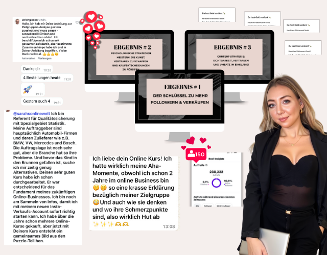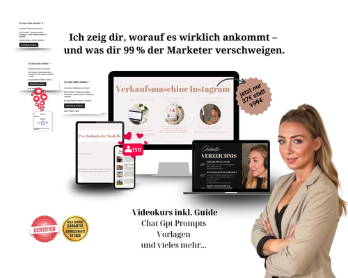 In diesem Workbook zeige ich dir, wie du also DEINE Strategie findest, die zu dir passt. Eine, mit der du dich wohlfühlst, die sich nicht wie Zwang oder Manipulation anfühlt – sondern wie echtes, nachhaltiges Marketing. Hier steckt mein Herzblut drin, aus jahrelanger Erfahrung, vielen Weiterbildungen (z.B. zur